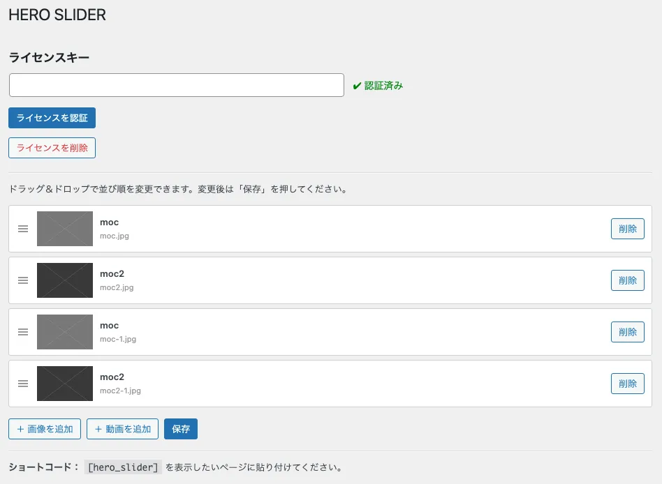 Hero Slider は、画像・動画をフルスクリーンでフェード表示するシンプルなスライダープラグインです。
